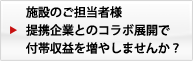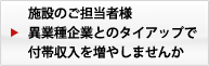 施設に通うお客様に「情報発信」「新たなサービス」「イベント」を実施して満足度の高い居心地のよい施設にするとともに、施設にはその満足度を付帯収入に結びつけていただきます。